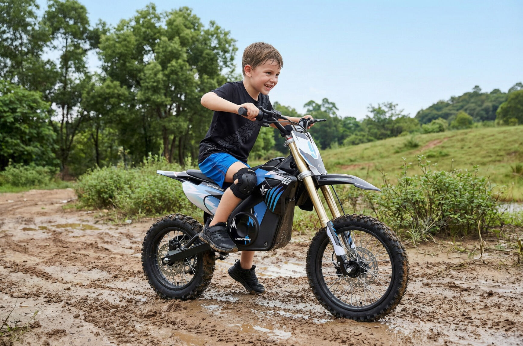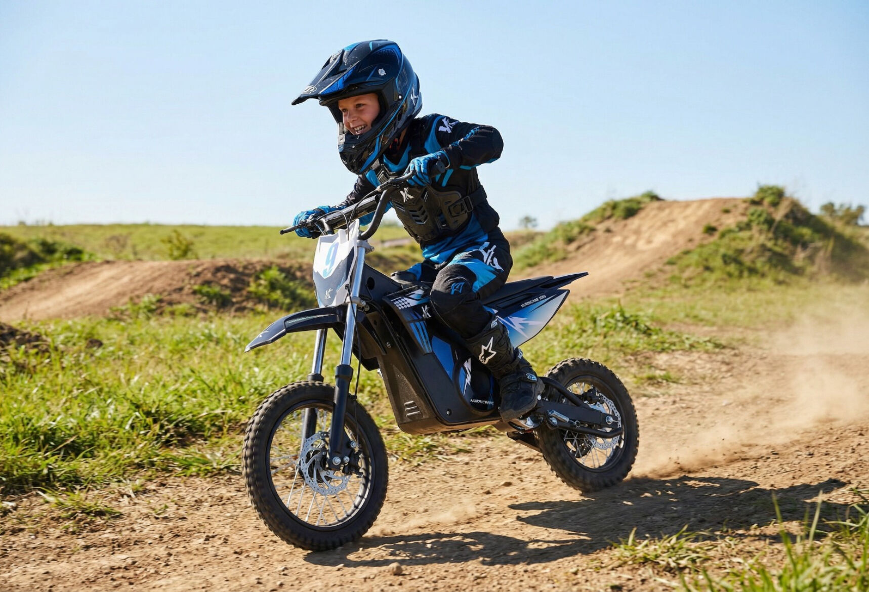 Mit der brandneuen Serie HURRICANE - haben wir nun 4 verschiedene Größen und Stärken von Dirt Bikes im Programm und damit passende Bikes für Kid´s von 120 cm bis 180 cm Körpergröße. Hier die Kleinste, die HURRICANE 1000! Fahrbar für Kid´s ab mindestens 120cm - passend bis 140 cm Körpergröße, das ist die HURRICANE 1000! !! LEIDER ERST WIEDER LIEFERBAR AB JUNI 2026 !!Wer warten kann - es lohnt sich!Etwas abgespeckt in der Motorleistung und trotzdem ein starkes Fahrzeug mit 36Volt. Große Reichweite dank der Lithiumbatterie mit 10,4 AH. Die Hurricane 1000 ist mit einem kraftvollen 1000W Elektromotor ausgestattet. Sehr gute Beschleunigung, voll geländegängig. 10 Zoll Luftbereifung hinten und 16 Zoll Luftbereifung vorne auf stabilen Metallspeichenfelgen, hydraulische Scheibenbremsanlage - billige Seilzugbremsen sind hier fehl am Platz. Eine ordentliche Federung ist selbstverständlich. Die Geschwindigkeit kann mittels einem Schalter vor der Sitzbank - mit absperrbarer Klappe - in 3 Stufen eingestellt werden. 10 km/h, 19 km/h und die Höchstgeschwindigkeit beträgt rasante 28 km/h. Somit ist dieses Bike sehr gut für Anfänger geeignet, aber auch für bereits geübte Kid´s. Fahrspaß garantiert.Die Vorteile von Elektrofahrzeugen gegenüber Benzinfahrzeugen liegen klar auf der Hand. Allem voran der Geräuschpegel. Mit einem Elektrofahrzeug wird der Nachbar nicht gestört. Benzinmotoren sind zudem sehr anfällig und wartungsbedürftig. Der Elektromotor ist wartungsfrei und langlebig. Wir empfehlen das Dirt Bike für Kinder ab einer Körpergröße von 120 cm bis 140 cm. Altersempfehlung geben wir bewusst keine, da die Kinder unterschiedlich groß sind. Geliefert wird dein Bike gut verpackt und eingebettet in einem perfekt passendem Styroporkörper. Dadurch sind Transportschäden (fast) ausgeschlossen.Was auch noch sehr wichtig ist - du bekommst bei uns alle Verschleiß - und Ersatzteile für dein Bike.Fahrzeuggewicht: 32 kg Abmaße: 133x64x86 cm Sitzhöhe: 62 cm Bodenfreiheit: 25 cm Radstand: 92,5 cm Höchstbelastung: 55 kg Du kannst auch gerne bei uns vorbeikommen und eine Probefahrt machen. Sieh dir unbedingt auch unsere Elektro-Quads an!