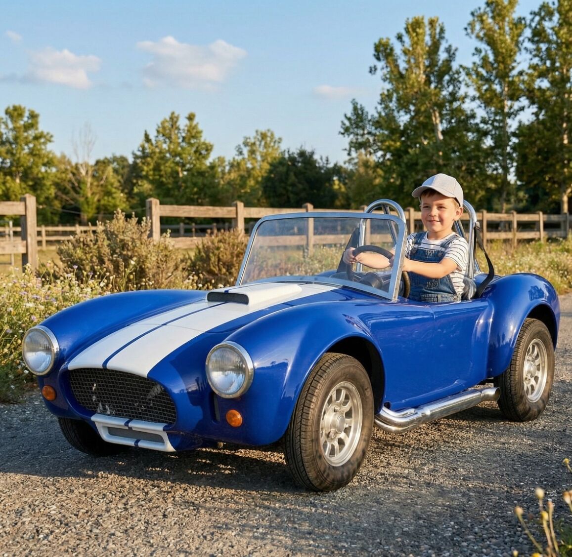 Die Legende der klassischen Sportwagen, die COBRA SHELBY made for KINDERAUTO Soviel vorab, eine detaillierte Beschreibung folgt: 1500W Brushless Elektromotor 60V/32AH Batterien sorgen für lange Laufzeiten Zweisitzer, mit 2650x1150x800 mm richtig groß, 190kg Eigengewicht150 kg Höchstbelastung Überrollbügel aus Edelstahl, Auspuffanlage aus Edelstahl, Holzlenkrad, was will man mehr,... Luftreifen, hydraulische Scheibenbremsen,...Du kannst auch gerne bei uns vorbeikommen und eine Probefahrt machen.