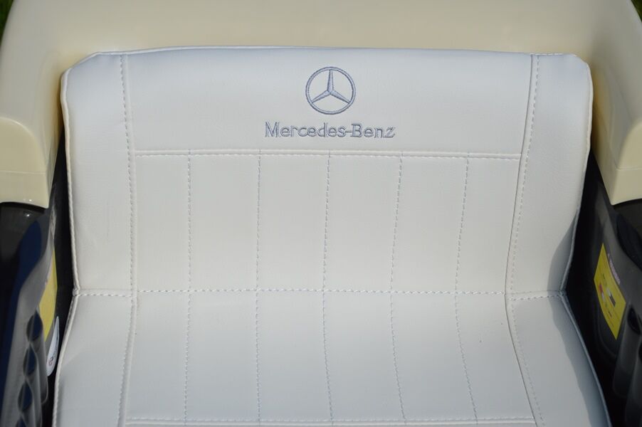 Mit diesem Schmuckstück begeistert (nicht nur) Ihr Kind alle seine Freunde. Die Oberflächen sind lackiert, das verleiht dem Mercedes eine glänzende und noch edlere Optik. Auf der breiten Sitzbank haben schonmal zwei kleinere Kinder Platz, die Sitzbreite beträgt 38 cm. Der weiße Kunstlederüberzug passt perfekt zum Fahrzeug. Die abriebfesten Weichgummireifen sorgen für ordentlich Grip und halten das Fahrgeräusch schön leise.