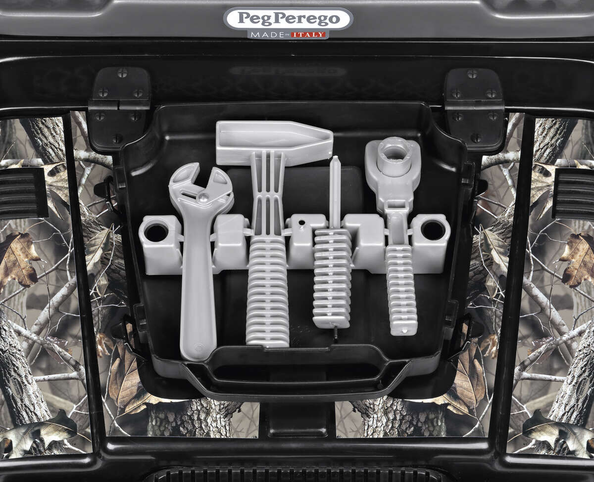 Das Netz an der Rückseite hält Gegenstände auf der Ladefläche von den Fahrersitzen fern. An der Motorhaube befindet sich ein abnehmbarer Werkzeugkoffer mit Hammer, Schraubenschlüssel, Engländer und Schraubenzieher. Die Motorhaube kann geöffnet werden. Darunter befindet sich eine Nachbildung des echten Motors mit Fahrwerk. Darunter liegt ein großes Fach für die Batterie.