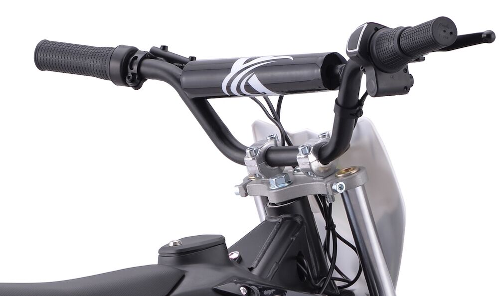 Für die kleinsten Crosser - ideal genial.Mit der brandneuen Serie HURRICANE - haben wir nun 5 verschiedene Größen und Stärken von Dirt Bikes im Programm und damit passende Bikes für Kid´s von 100 cm bis 180 cm Körpergröße. Hier die Kleinste, die HURRICANE 250! Fahrbar für Kid´s ab mindestens 100cm - passend bis 120 cm Körpergröße, das ist die HURRICANE 250! Mit 250 Watt etwas weniger Motorleistung, ist auch für die kleinsten Crosser gedacht - und trotzdem ein starkes Fahrzeug mit 24Volt.Mit 16 km/h Höchstgeschwindigkeit für die meisten ausreichend für den Anfang - es ist noch kein Meister vom Himmel gefallen! Große Reichweite dank der Lithiumbatterie mit 5,2 AH. Die Hurricane 250 ist mit einem kraftvollen 250W Elektromotor ausgestattet.14 Zoll Luftbereifung auf stabilen Kunststoffspeichenfelgen. Eine ordentliche Federung ist selbstverständlich. Fahrspaß garantiert.Die Vorteile von Elektrofahrzeugen gegenüber Benzinfahrzeugen liegen klar auf der Hand. Allem voran der Geräuschpegel. Mit einem Elektrofahrzeug wird der Nachbar nicht gestört. Benzinmotoren sind zudem sehr anfällig und wartungsbedürftig. Der Elektromotor ist wartungsfrei und langlebig. Wir empfehlen das Dirt Bike für Kinder ab einer Körpergröße von 100 cm bis 120 cm. Altersempfehlung geben wir bewusst keine, da die Kinder unterschiedlich groß sind. Geliefert wird dein Bike gut verpackt und eingebettet in einem perfekt passendem Styroporkörper. Dadurch sind Transportschäden (fast) ausgeschlossen.Was auch noch sehr wichtig ist - du bekommst bei uns alle Verschleiß - und Ersatzteile für dein Bike.Fahrzeuggewicht: 16 kg Abmaße: 105x58x70 cm Sitzhöhe: 50 cm Bodenfreiheit: 18 cm Radstand: 70 cm Höchstbelastung: 40 kg Du kannst auch gerne bei uns vorbeikommen und eine Probefahrt machen. Sieh dir unbedingt auch unsere Elektro-Quads an!