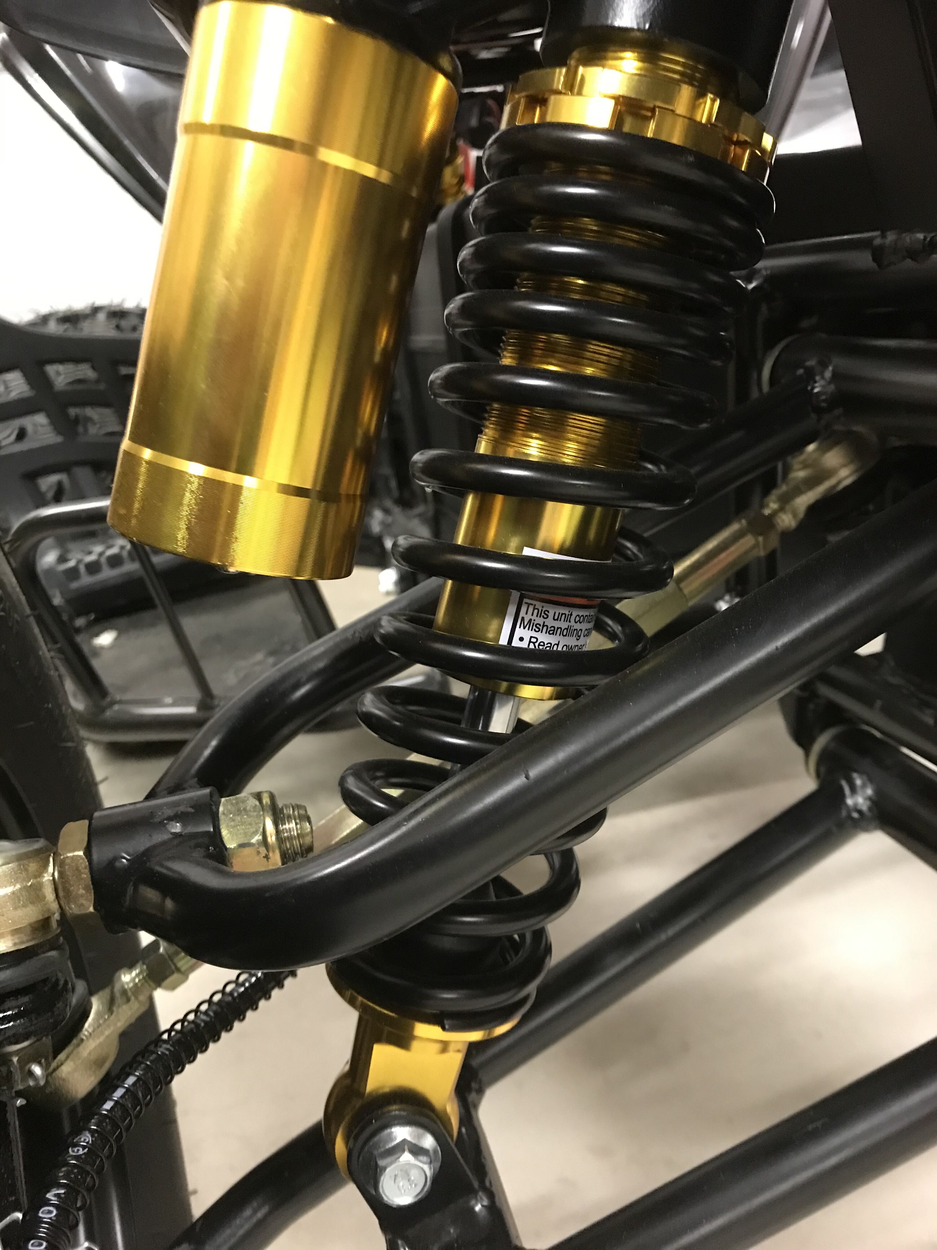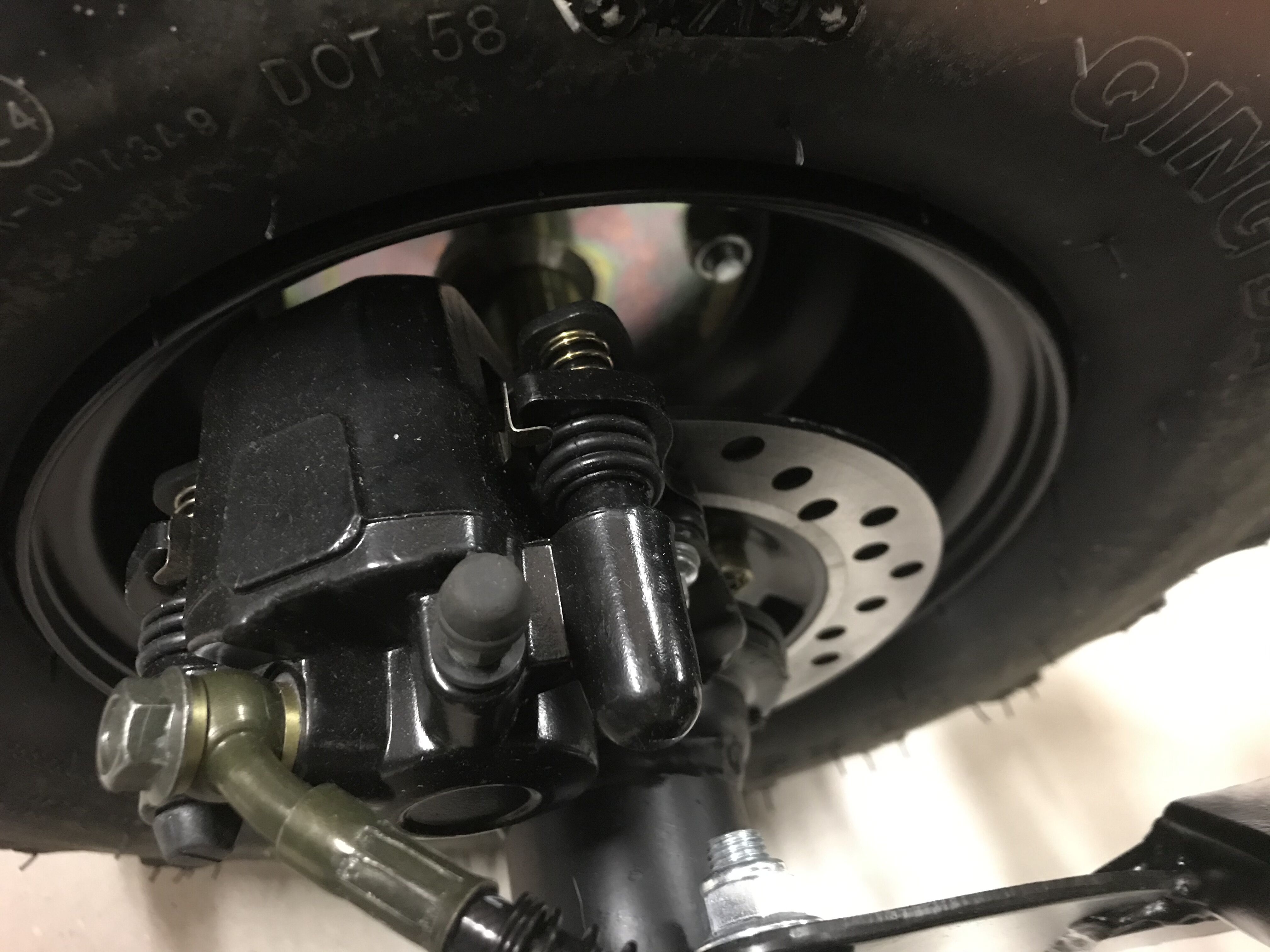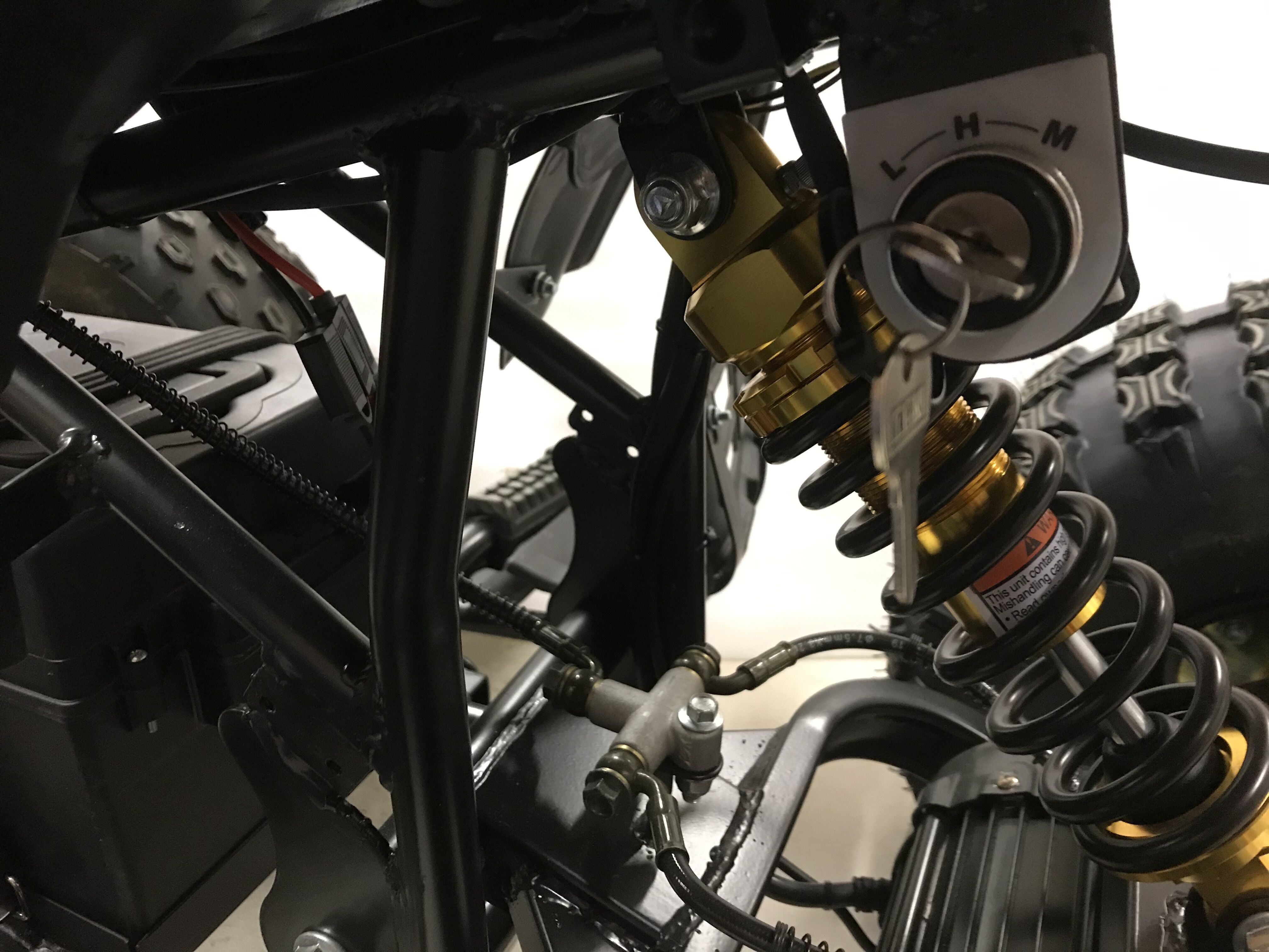Gebremst wird das Quad an allen 4 Rädern durch hydraulische Scheibenbremsen. Billige Seilzüge sind hier fehl am Platz.