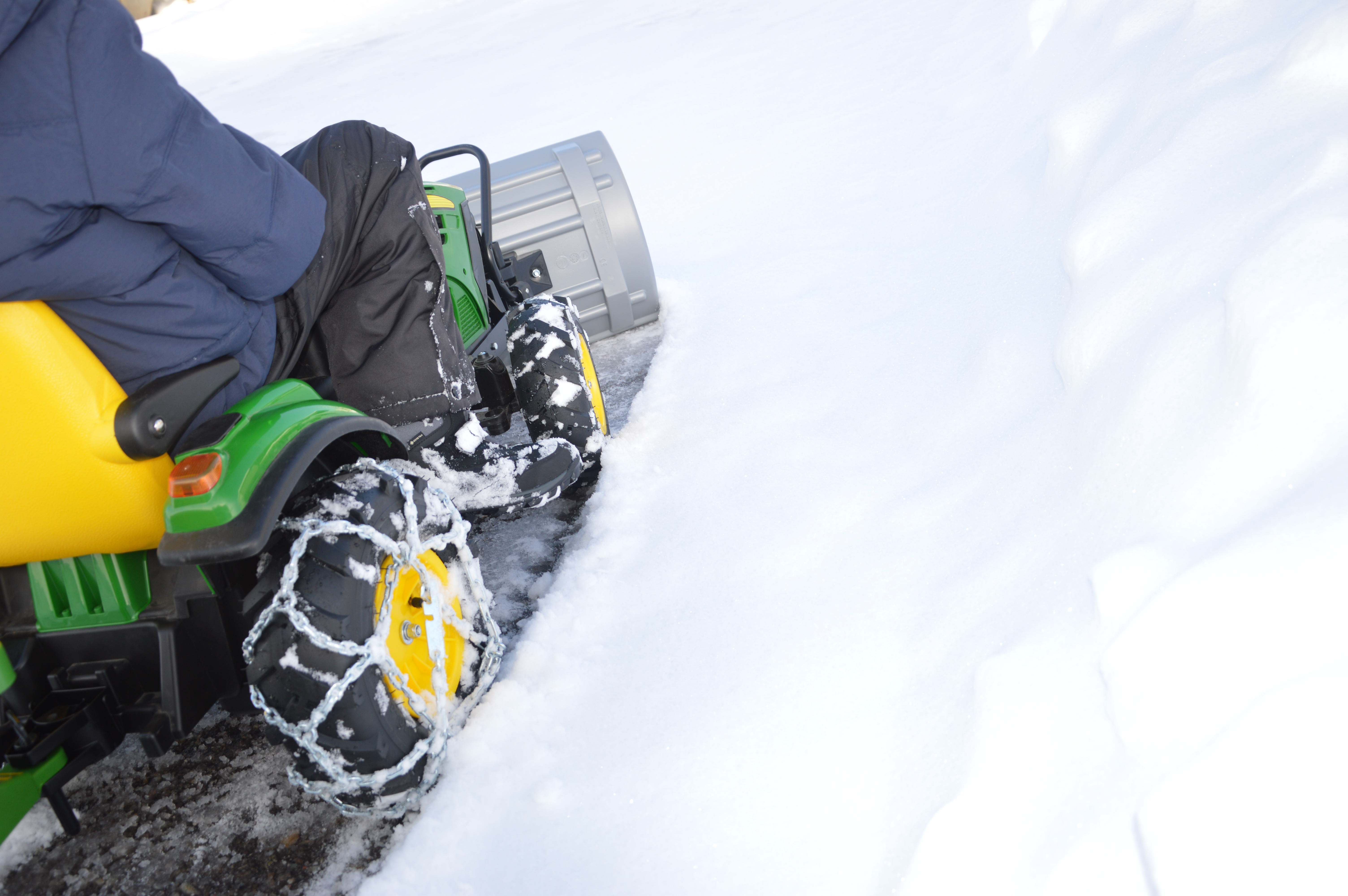 Mit der im Lieferumfang enthaltenen stabilen Hubvorrichtung wird das Schneeschild einfach auf und ab bewegt und ist mit einem Handgriff in der Höhe arretiert. Auch das An- und Abbauen des Schildes an den Traktor ist einfach und kann von den Kids ohne Hilfe der Eltern spielerisch erledigt werden.